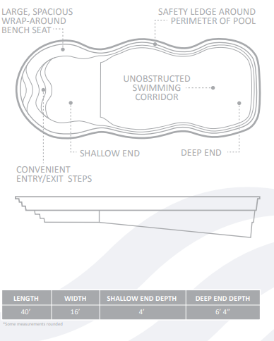 The Caribbean™ style pool is modeled to match The Mediterranean™ in almost every way, but has been modified to stand at 6’ 4” at its deepest depth.