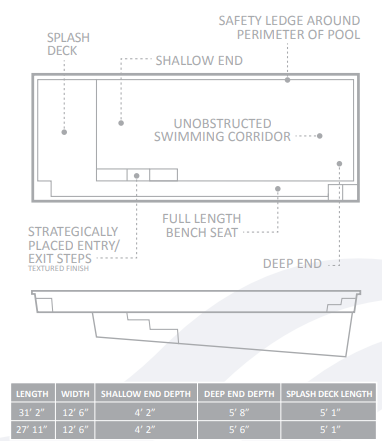 The splash deck is a great-looking addition and transforms your Reflection™ pool into a much more appealing and versatile space. At 31’ 2” and 27’ 11”, you get so many more options for your backyard.