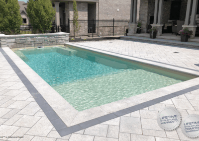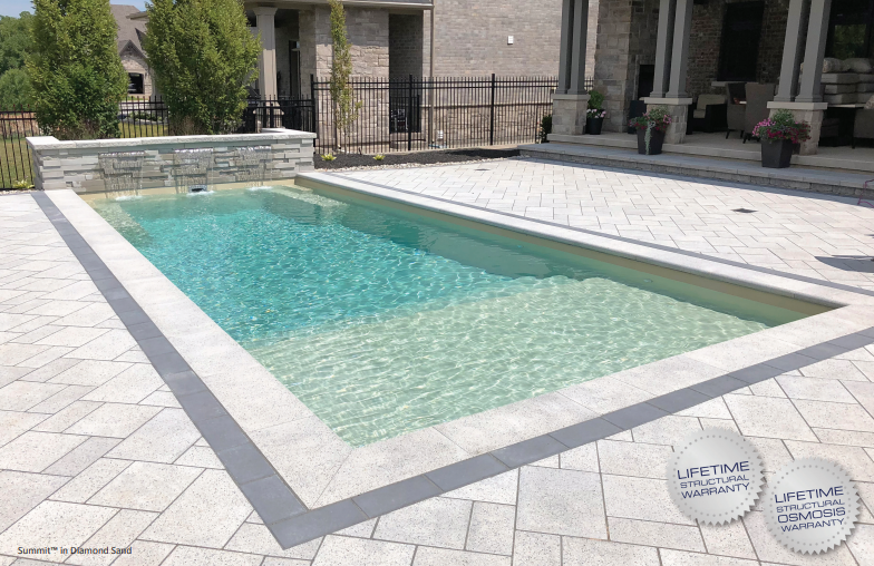 Based upon the popular design of the larger Pinnacle™ design, it features a full-width entry step at the shallow end that incorporates a grand splash deck area for little ones to play in, to support reclining chairs, or simply to relax in.