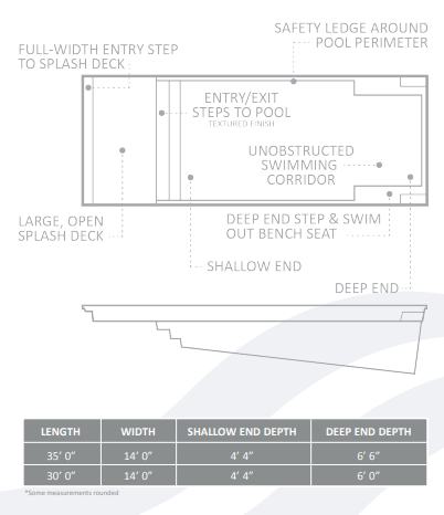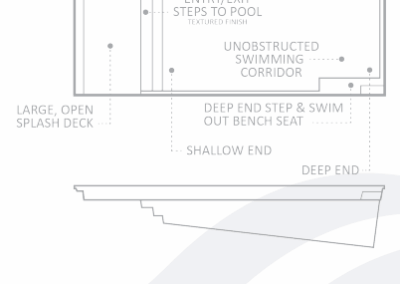It offers a great depth variety to appeal to all levels of swimmers. Deep end seats and entry and exit steps provide an area for rest and relaxation within the pool.