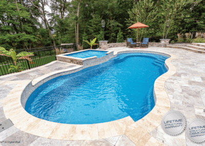 Suitability and adaptability are the words that are most often used to describe our Riviera™ pool. This is a swimming pool design that seems to blend perfectly with any home style and any home site. Its beautiful flowing lines and free-form design are a delight to landscape.